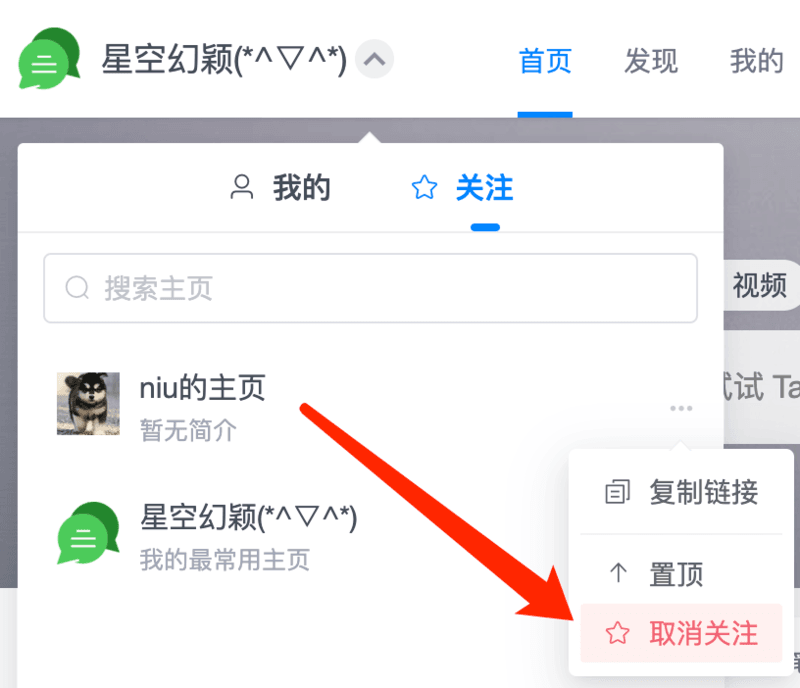 取消关注主页