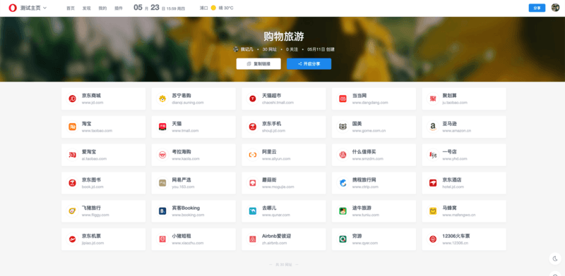 新窗口可以一次性全部展示分类下的书签,并且视觉范围更大,看起来更加直观。而且还可以在这里分享你的分类。