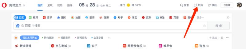 点击主页顶部导航栏右侧【布局】按钮,打开布局设置面板。
