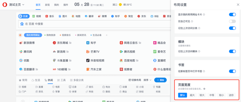 注意:此设置仅针对【经典】布局生效。【聚焦、大屏】布局官方进行了自动宽度适配,不可手动设置。